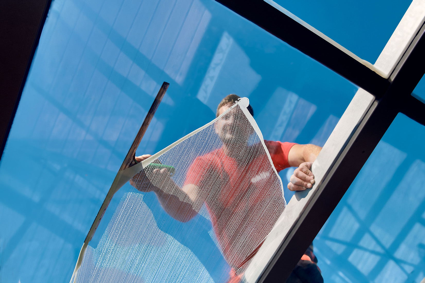 Wo früher Leitern oder Hebebühnen mit entsprechendem Personal benötigt wurden, um schwer zugängliche Flächen zu säubern, kann ein Mitarbeiter mit dem Reinwasser-System die gleiche Arbeit und Quadratmeter-Leistung in wesentlich kürzerer Zeit erledigen.